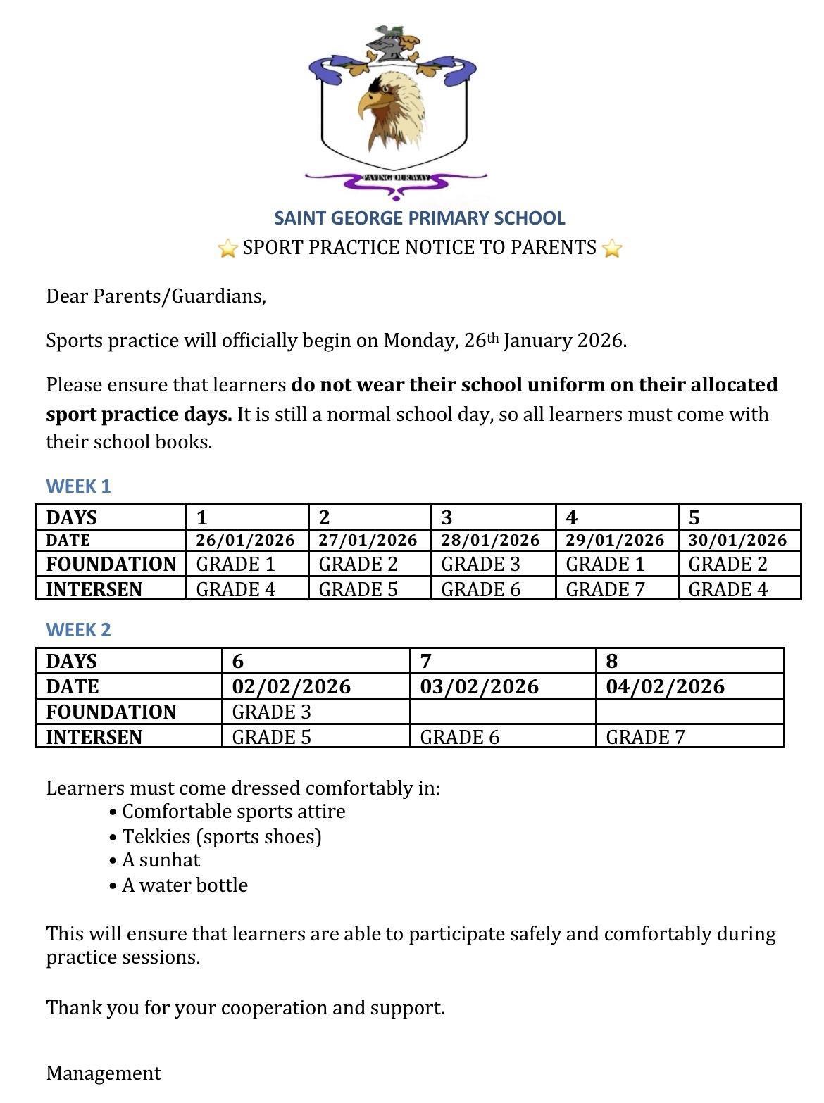 Sports Practice Times